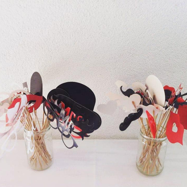 Photobooth je namenjen izključno za zabavo hkrati pa ostane mladoporočencem lep spomin. Postavimo pred vhodom v dvorano ali naredimo kotiček za slikanje. Na razpolago imamo veliko rekvizitov s katerimi se lahko slikate. Vsak rekvizit je nameščen na svoji palčki. Na razpolago 30 primerov. To si lahko izposodite pri nas v agenciji.